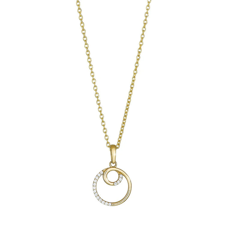 Siersbøl 8kt. guldvedhæng cirkel m/cz inkl. forgyldt sølvkæde