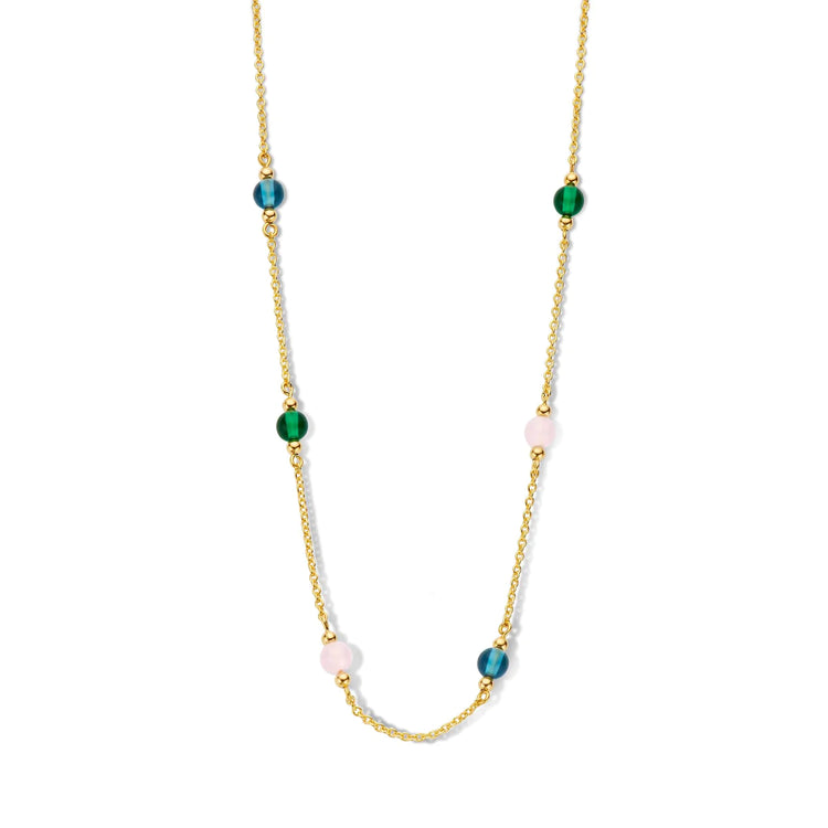 Confetti halskæde 42/45 cm - sterlingsølv forgyldt med multifarvede agater