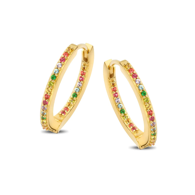 skønne Passion hoop øreringe small - sterlingsølv forgyldt - multifarvede zirkonia