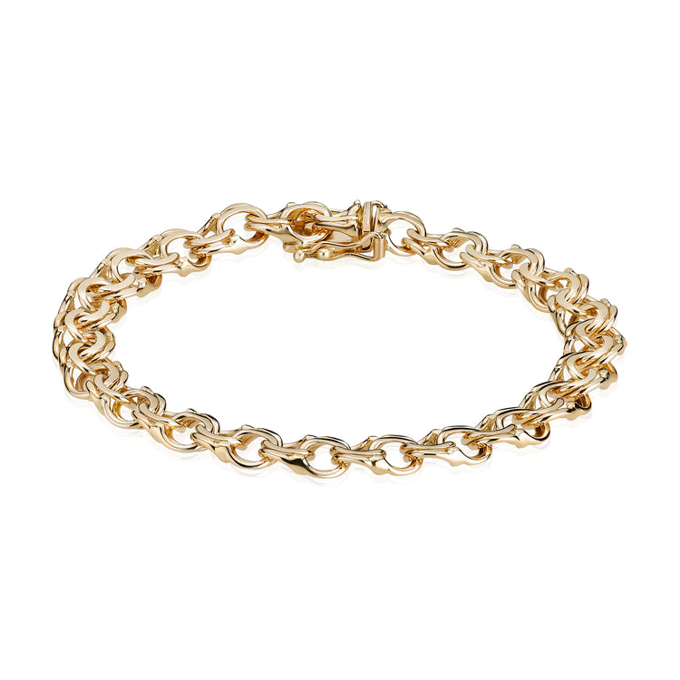 Dette kraftige Bismark-armbånd i 8kt. guld er et smykke med markant fylde og klassisk elegance. Med en bredde på 6,10 mm og en længde på 18,5 cm får du et armbånd, der udstråler kvalitet og solidt håndværk. Den tætte Bismark-struktur sikrer en behagelig pasform og et flot spil i lyset, mens det tidløse design gør armbåndet velegnet til både hverdag og festlige lejligheder.