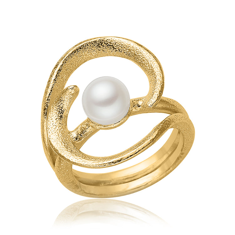 Ring i guldbelagt sølv med perle – Blicher Fuglsang