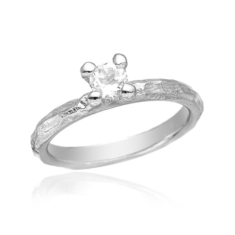 Smuk klassisk samlering i sølv med en hvid topaz. På en gang rå, feminin og klassisk i sin form.