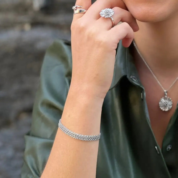 Savanna armbåndet fra Blicher Fuglsang kombinerer moderne dansk design med et legende og farverigt udtryk. De små emaljekugler tilfører armbåndet personlighed og liv, mens materialet – rustfrit stål med PVD-belægning – sikrer både slidstyrke og 100 % vandfasthed. Et smykke, der kan bæres hele dagen og bringer farve til både hverdag og fest.