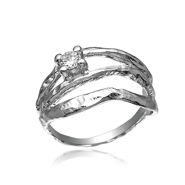 Statement ring i sølv - Feminin og iøjnefaldende ring inspireret af naturens dynamik, med en stilren og smukt indfattet zirkonia.