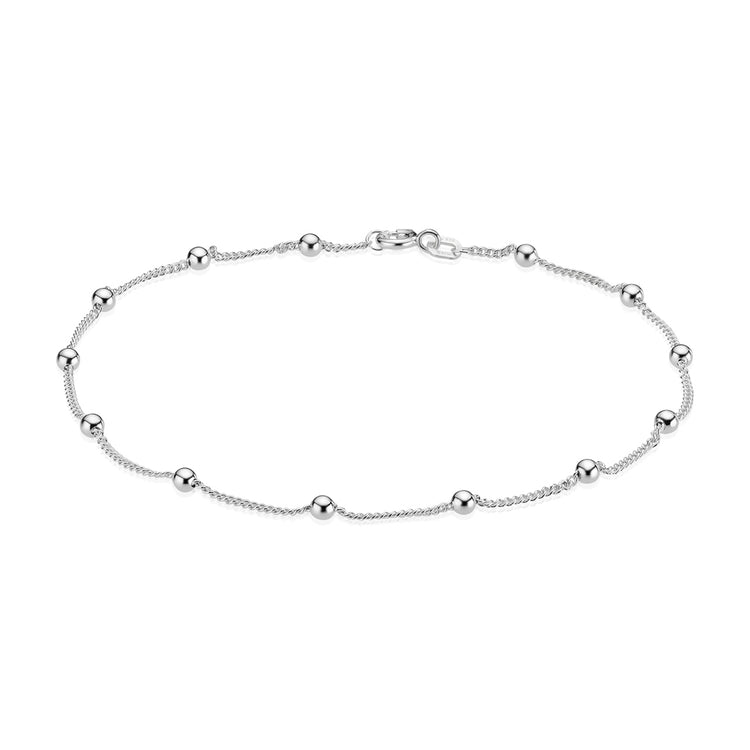 Rund Panser ankelkæde m/Kugle i Sølv - 1,30mm