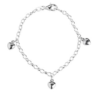 Rhod. sølvarmbånd m/hjerter 17 cm