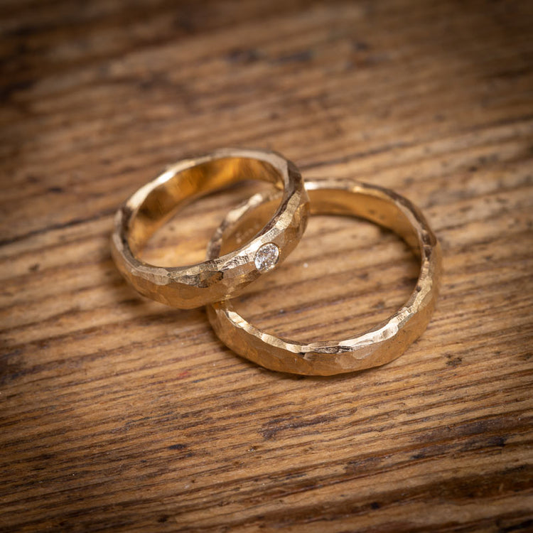 I kan selv medbringe eget guld - f.eks. arvesmykker, som vi smelter om til din ring - så kan I samtidig reducere prisen. På den måde kan I bringe minderne videre fra smykker, som ikke anvendes mere.