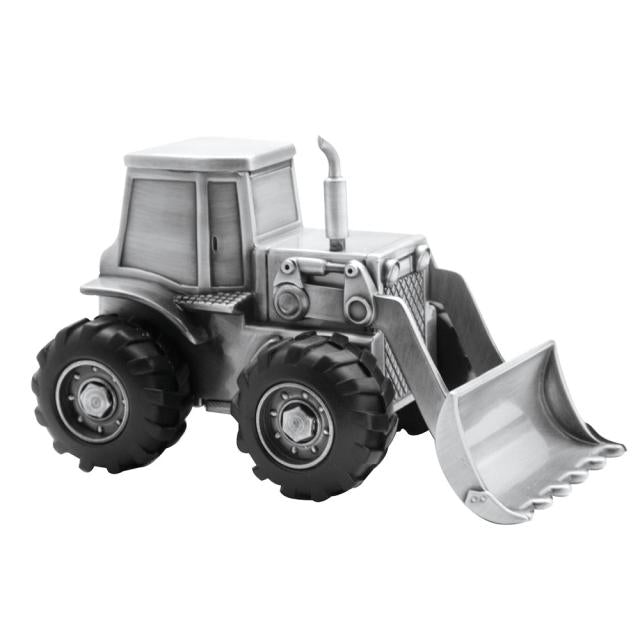 En sjov og dekorativ sparebøsse formet som en gravko, fremstillet i blankt fortinnet metal. Det detaljerede design med tydelige hjul, skovl og kabine gør den til en oplagt gaveidé til barnedåb, fødselsdag eller som et særligt minde til børneværelset. Sparebøssen har en praktisk åbning i bunden, så indholdet nemt kan tømmes, og den kan personliggøres med gravering på taget. Bemærk, at fortrydelsesretten frafalder ved tilkøb af gravering.