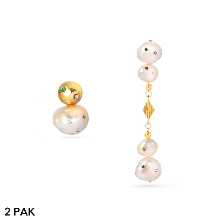 Extra Bejeweled øreringe 2pak Ferskvandsperler og farvede zirkoner fra Dropps By Szhirley
