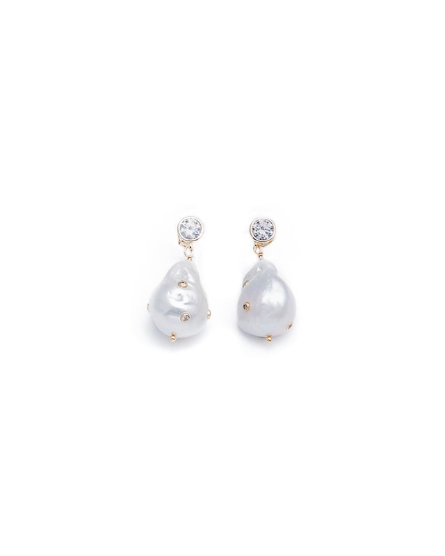 ALEXANDRA Ørepynt med ferskvandsperler + zirkonia i forgyldt sølv
