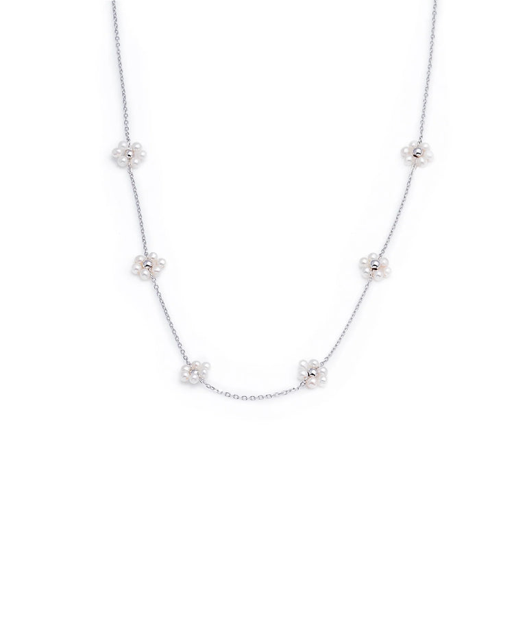 AVA Halskæde m. ferskvandsperler i rho. sølv 40+5 cm
