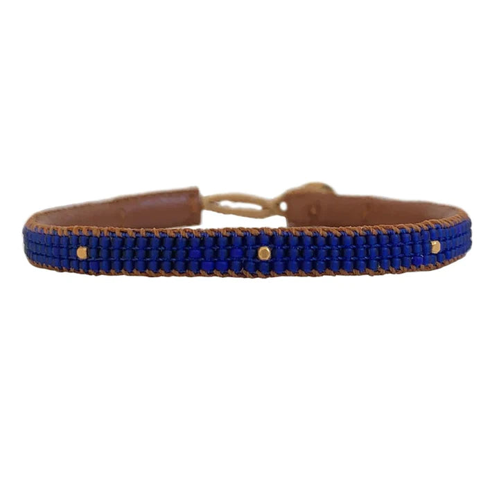 Denne super søde stil har små guldprikker og er håndsyet på blødt læder. Bær den alene eller sæt den sammen med vores andre armbånd