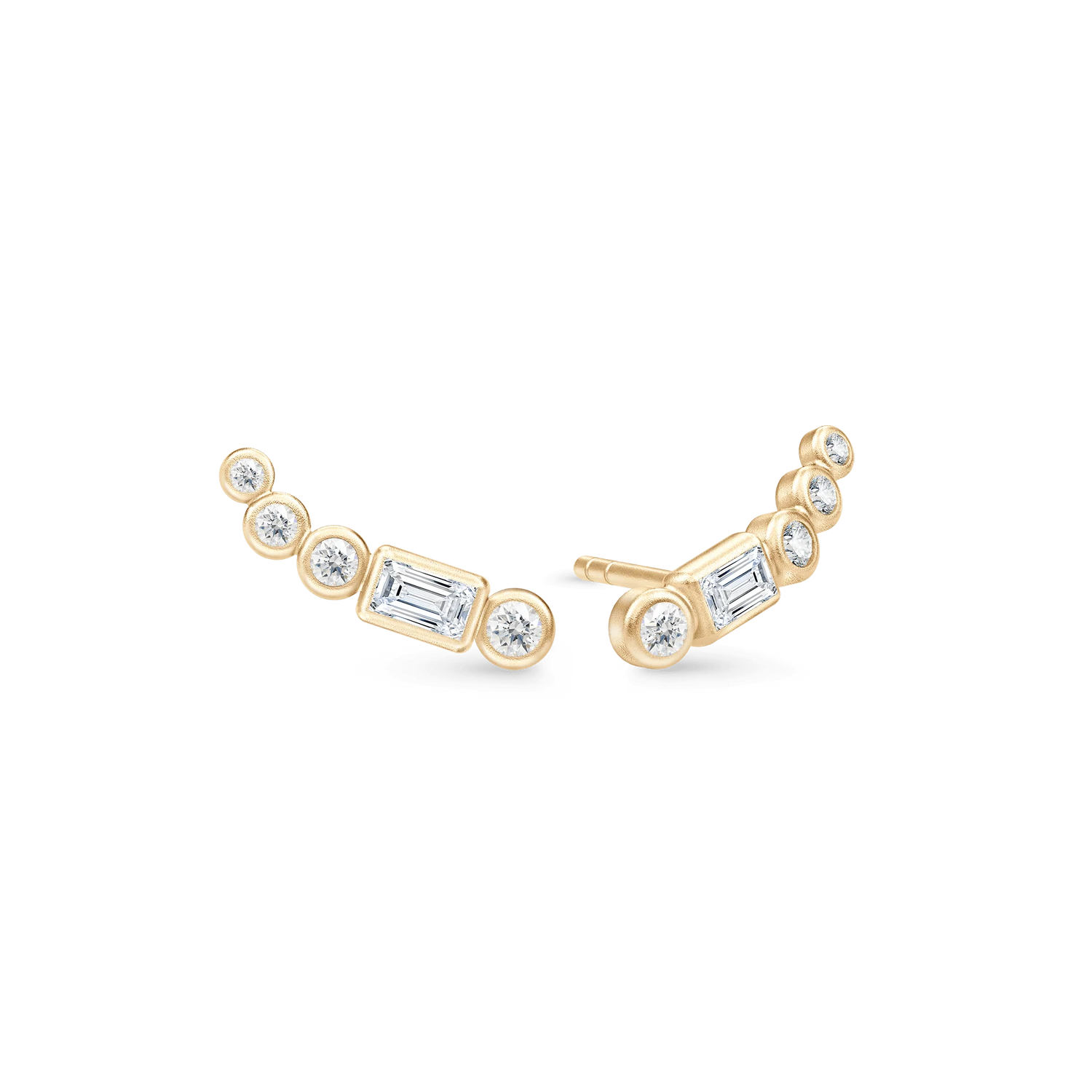 Expressive ear crawlers that wind beautifully up the ear and add a distinctive look to your jewelry box. The petite earrings are produced in 100% recycled 22 carat gold-plated 925 sterling silver and feature a trendy combination of emerald and round cut cubic zirconia. Perfect to combine with other Julie Sandlau earrings. The earrings measure 14 x 3 mm.