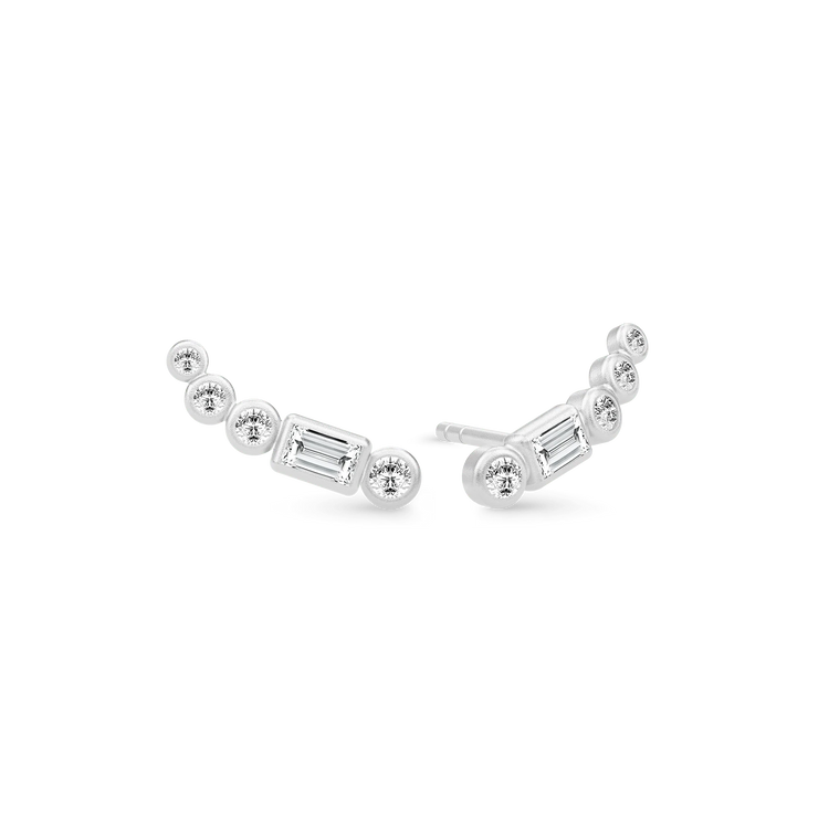 Udtryksfulde ear crawlers, der slanger sig smukt op af øret, samt tilføjer et særegent look til dit smykkeskrin. De smukke øreringe er produceret i 100% genanvendt satinrhodineret 925 sterling sølv, og bærer en modig kombination af emerald- og brillantslebne kubiske zirkonia. Perfekte til at kombinere med andre Julie Sandlau øreringe.