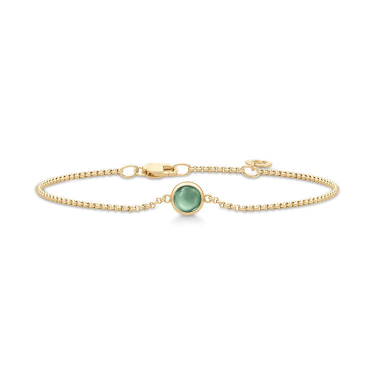 Vores Prime-kollektion kendetegnes af farverige cabochon-krystaller, indrammet af et guldbånd. Dette armbånd har en smuk farvet krystal og kan matches med tilhørende vedhæng og øreringe fra samme kollektion. Armbåndet er håndlavet i 22 karat forgyldt 925 sterlingsølv med en justerbar længde på 16,5 cm til 18,0 cm.