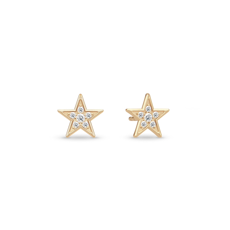 Disse symboliske Stella ørestikkere er smukt udsmykket med skinnende cubiske zirkonia og håndlavet i 22 karat forgyldt 925 sterlingsølv. De måler 7,3 mm x 7,6 mm og har en ideel størrelse, der giver dig mulighed for at kombinere det med flere af Julie Sandlaus funklende øreringe. Udforsk også vores matchende Stella-vedhæng for et sammenhængende look.