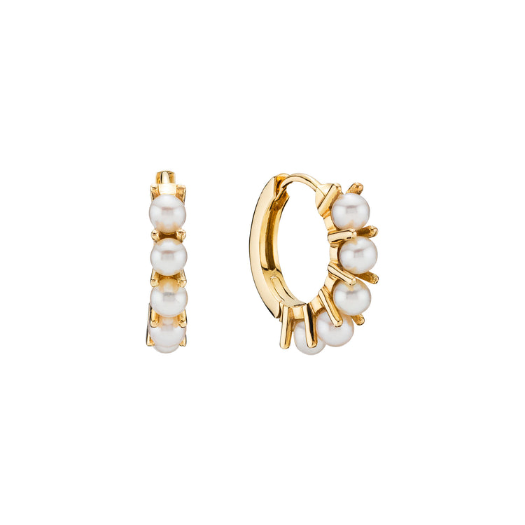 Disse fine creoler fra Lund Copenhagen er fremstillet i 8 karat guld og udsmykket med ægte ferskvandsperler i størrelsen 3–3,5 mm. Det elegante og delikate udtryk skabes af de ti perler, som smukt følger creolens form. Med en diameter på 13 mm er de perfekte til både hverdag og fest – et feminint og klassisk valg med naturlig glans.