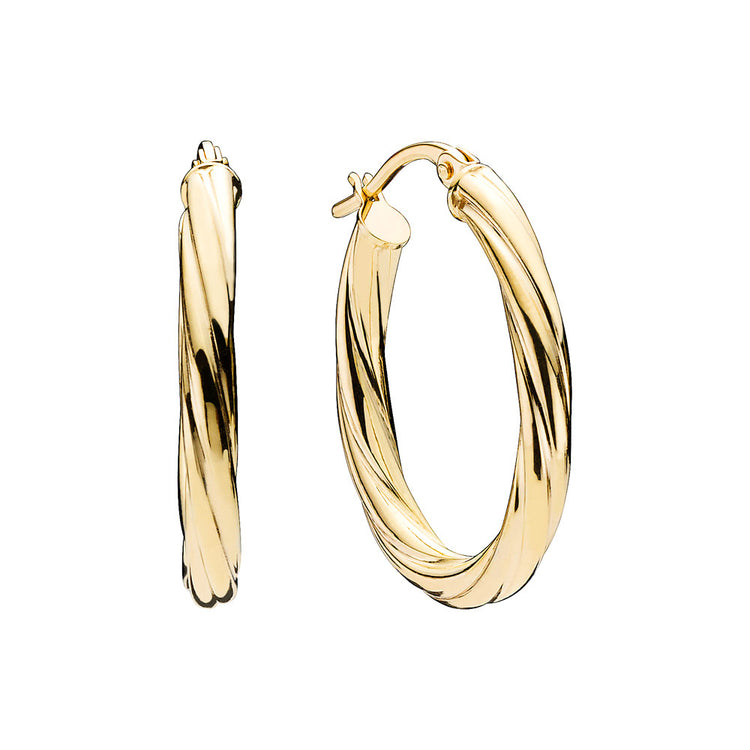 Disse elegante creoler fra Lund Copenhagen er fremstillet i 9kt. guld og har en oval form med snoet design, der tilfører et klassisk og raffineret udtryk. Med målene 24 x 20 mm og en bredde på 2,8 mm er øreringene både iøjnefaldende og behagelige at bære. Det snoede mønster giver smykket et levende spil i lyset og gør dem velegnede til både hverdag og fest.