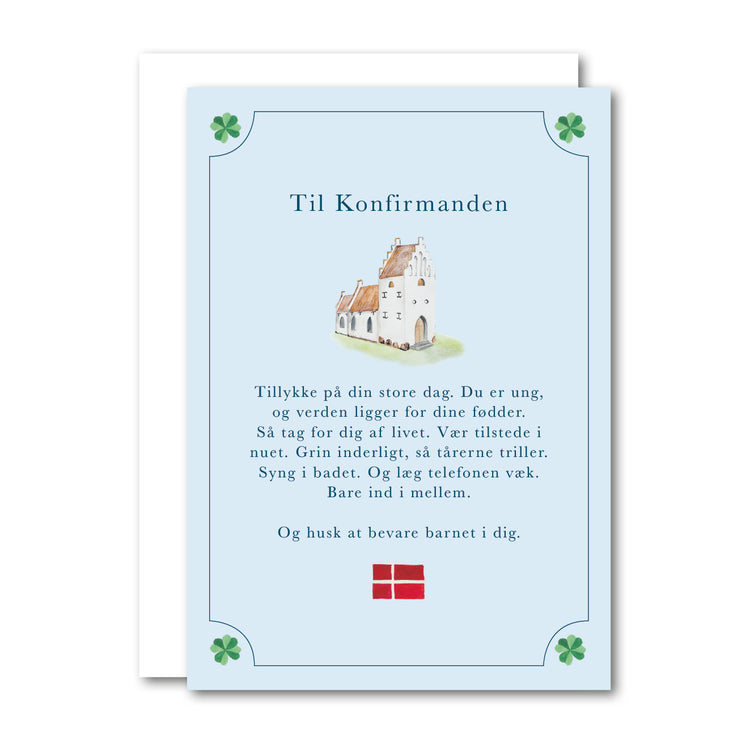 Smukt og unikt kort designet af Annemette Voss Fridthjof, perfekt til konfirmationer og personlige hilsner.