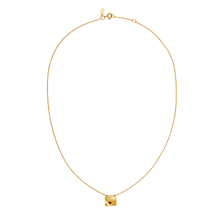 Kærlighed kender ingen grænser, når der sættes ord på. Vores With Love halskæde indeholder løftet om alle dine kærlige ord, sikkert forvaret i en hjerteforsejlet konvolut, klar til at blive sendt til en du har kær. Materialer: Genanvendt Sterling sølv (925) belagt med 18 K guld, emalje Størrelse: Længde 42 cm + 3 cm ext. kæde