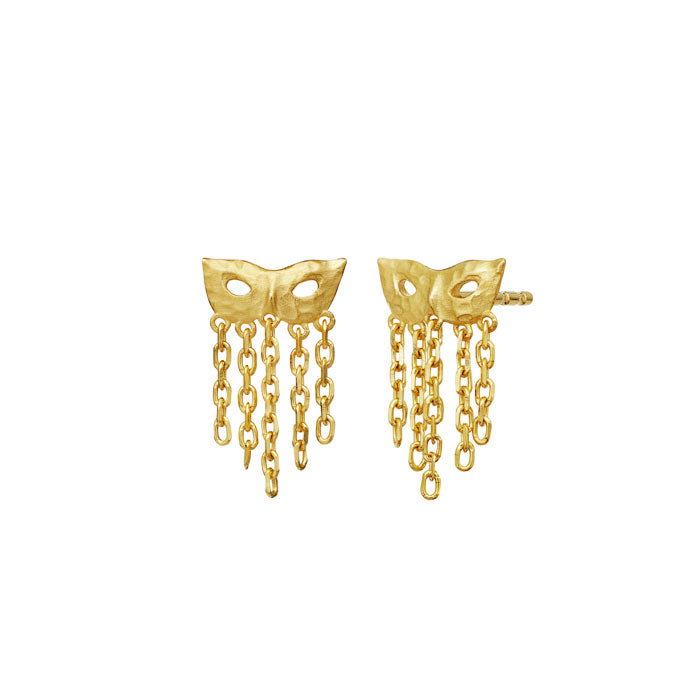 Hvem gemmer du dig for? Vis dit sande jeg med Maanestens Celare forgyldte Øreringe, der med sin elegante maske og gyldne kæder giver din dag et magisk teatralsk løft. Smykket er en hyldest til autenticitet og modet til at stå frem, og det kunstneriske formsprog gør øreringene til et lille kunstværk, der understreger din personlighed.