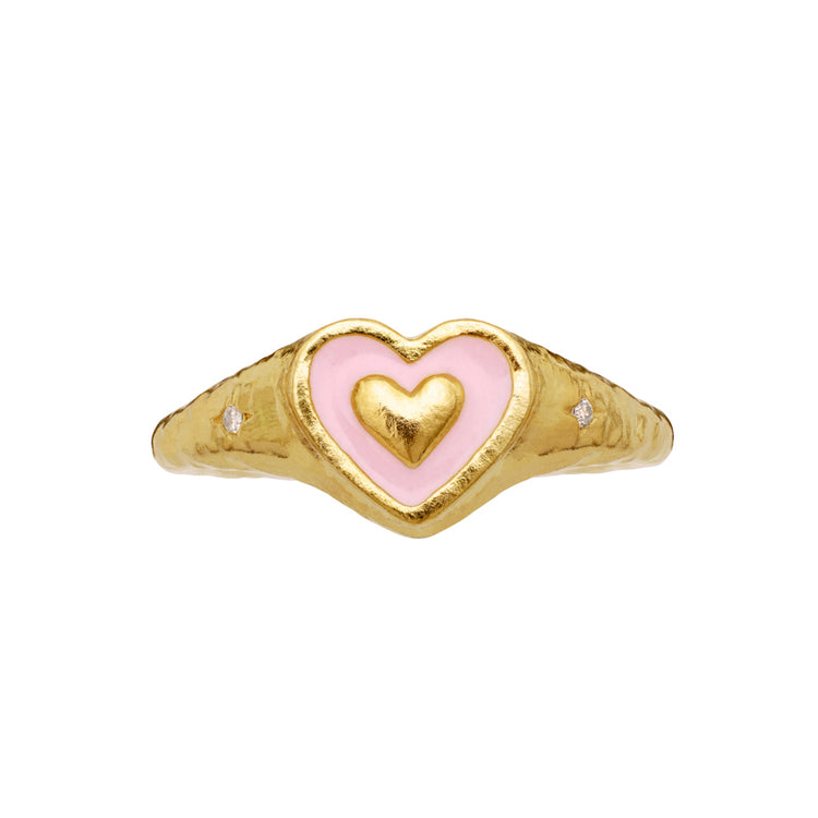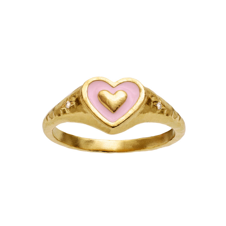 Alma Ring – Lyserød Hjertering med Zirkonia