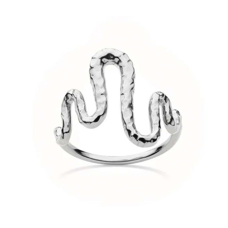 Viva ringen fra Maanesten er en klassiker med en moderne twist. Ringen er fremstillet i sterlingsølv og har en smuk bølget form med en banket overflade, der giver et sofistikeret udtryk. Den enkle, men alligevel iøjnefaldende design gør den ideel til både hverdag og fest.