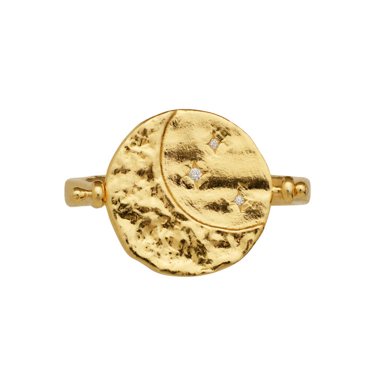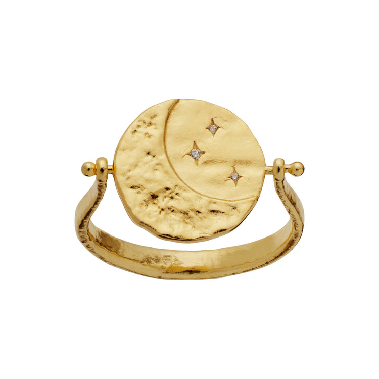 Uanset om du udstråler energi som den varmende sol, eller om du som månen er rolig og reflekterende, kan amuletten på Sunna Ringen vendes for at spejle din energi i dag. Et smykke med dyb symbolik og et elegant, organisk design – skabt til at følge dig gennem livets skiftende stemninger.