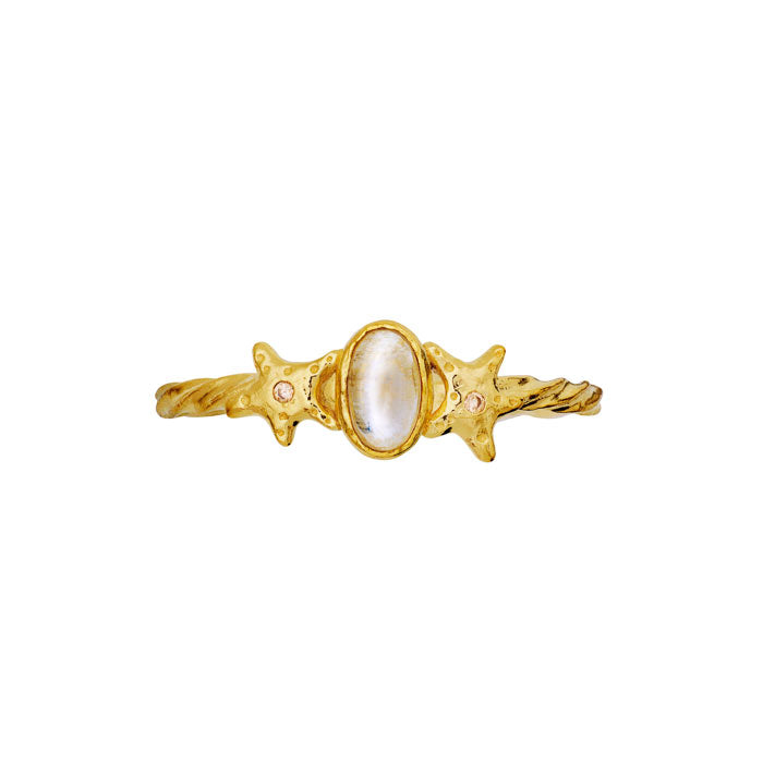 Ula ringen fra Maanesten er den perfekte blanding af enkel elegance og stilfuldt design. Ringen er lavet af genanvendt sterling sølv (925) og belagt med 18 karat guld, hvilket giver den et luksuriøst og tidløst udtryk. Denne ring kan bruges alene for et minimalistisk look eller kombineres med andre smykker for et personligt touch.
