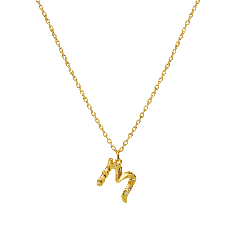 M Alphabet Halskæde forgyldt Maanesten
