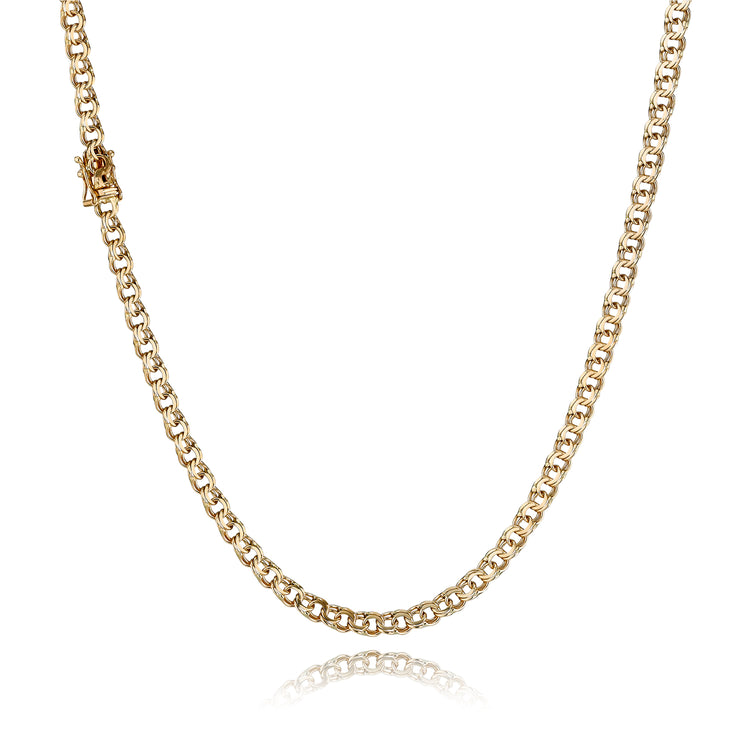 Denne klassiske Bismark-kæde i 8kt. guld er et elegant og alsidigt smykke, der kan bæres som både armbånd og halskæde. Med en bredde på 4,00 mm får du et smykke med flot fylde og et tidløst udtryk. Den tætte Bismark-struktur sikrer en behagelig pasform og et smukt spil i lyset, mens den varme glød fra 8kt. guld understreger det solide håndværk. Et smykke, der passer perfekt til både hverdag og fest.