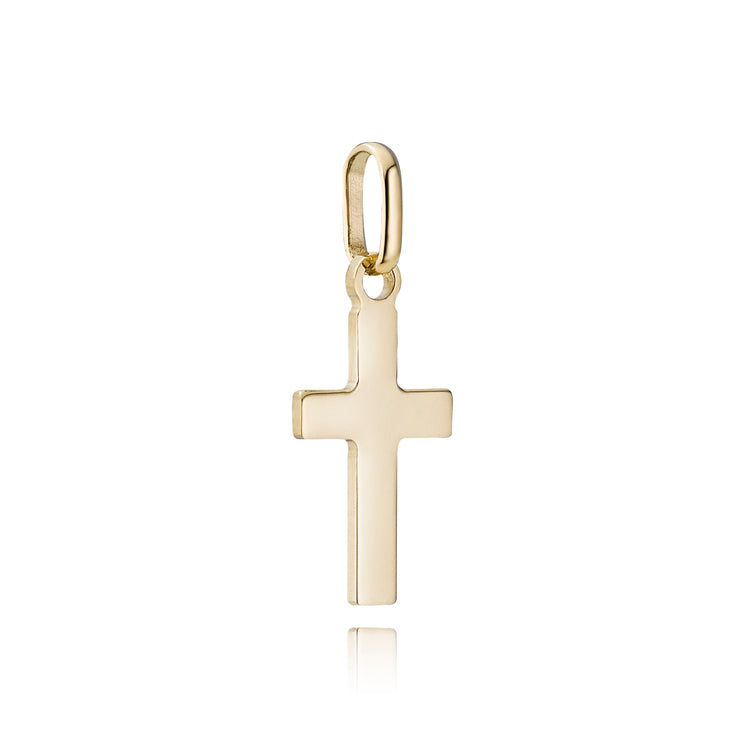 Dette klassiske korsvedhæng i 8kt. guld er et tidløst og meningsfuldt smykke med et enkelt og elegant udtryk. Med målene 15x12 mm har vedhænget en fin og diskret størrelse, der gør det velegnet til både hverdag og særlige lejligheder. Den glatte overflade og varme glød fra 8kt. guld understreger det stilrene design, som kan bæres alene eller med andre smykker for et personligt udtryk.
