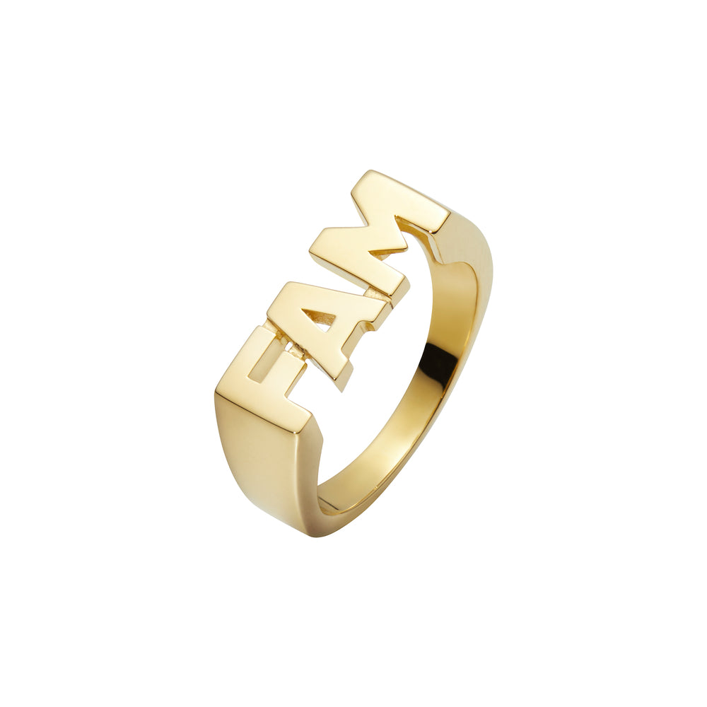 FAM ringen fra Maria Black er en hyldest til hverdagens helte og de historier, der former os. Med sit enkle og markante design er den skabt til at udtrykke personlighed og stil – uanset om du bærer den alene eller i en stack. Den varme guldglød og det minimalistiske udtryk gør ringen til et elegant valg, der passer til enhver lejlighed. En tidløs ring med et moderne twist, designet til både kvinder og mænd.