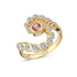 FLOW-ringen fra Nuran er et eksklusivt og kunstnerisk smykke, der kombinerer luksus og elegance. Ringen er fremstillet i 14 karat rødguld og prydet med en smuk turmalin som centrum, omgivet af brillantslebne diamanter på i alt 0,65 ct. i kvaliteten Wesselton SI. Et unikt design, der udstråler personlighed og raffinement – perfekt til den moderne kvinde, der ønsker et statement-smykke.