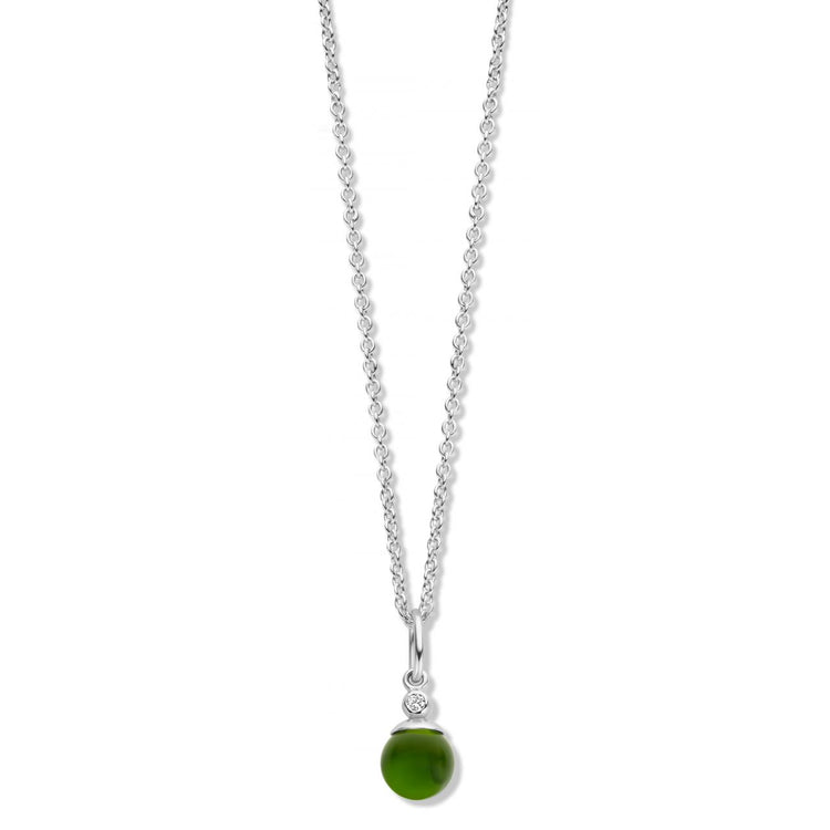 Figaro halskæde i sterlingsølv, med den smukkeste 6mm grøn kugle og zirkonia sten, som gør halskæden så elegant og fin.