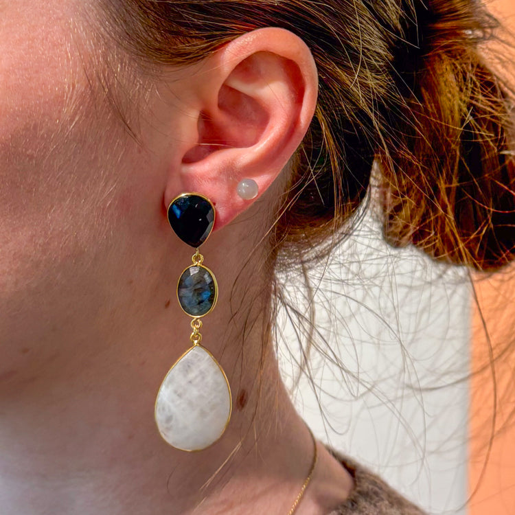 1 stk. fg. Big drop onyx labradorit Månesten no.13 ørehænger - ONE OF A KIND