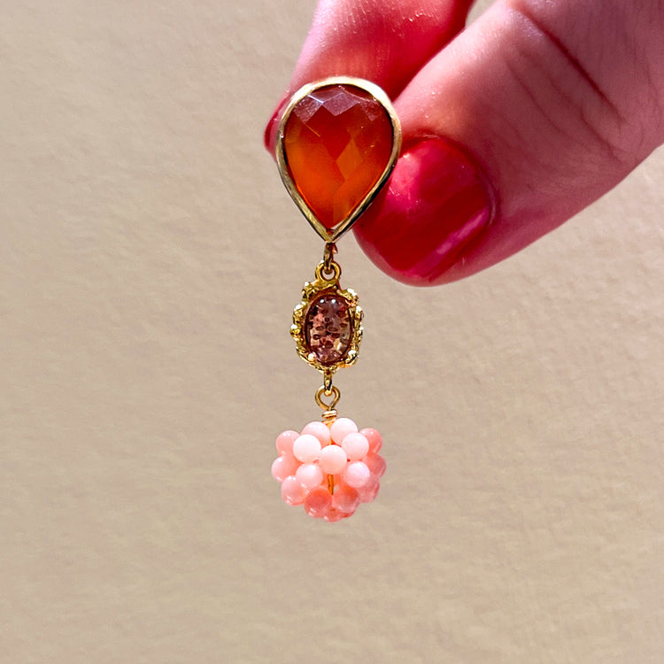 1 stk. fg. Small drop ametyst koral karneol no.21 ørehænger - ONE OF A KIND