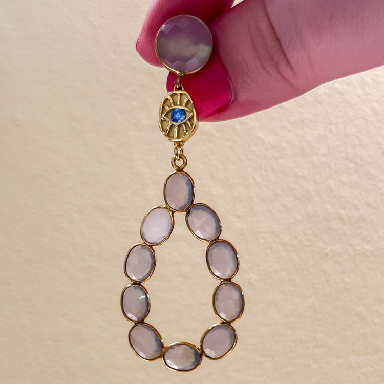 1 stk. fg. Big Dot Chalcedon No. 11 ørehænger - ONE OF A KIND