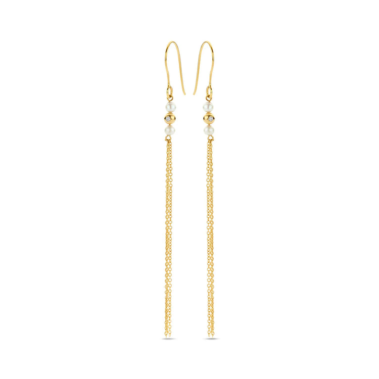 Disse Ophelia ørehænger er en hyldest til yndefuld elegance. Designet i 14kt genanvendt rødguld med fine kæder, ferskvandsperler og 0,0166ct diamant. Ophelia ørehængerne udstråler en udsøgt kombination af tidløs skønhed og moderne design. Bær Ophelia til hverdag eller særlige lejligheder, da de tilføjer et strejf af luksus og femininitet til enhver stil.