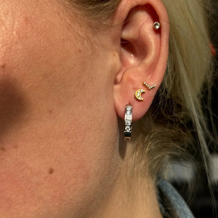 Øreringene er en del af Alita-kollektionen, inspireret af kærlighed og stærke bånd. De måler 16 mm og er dekoreret med fine sten fortil, der tilfører et smukt og feminint blikfang.