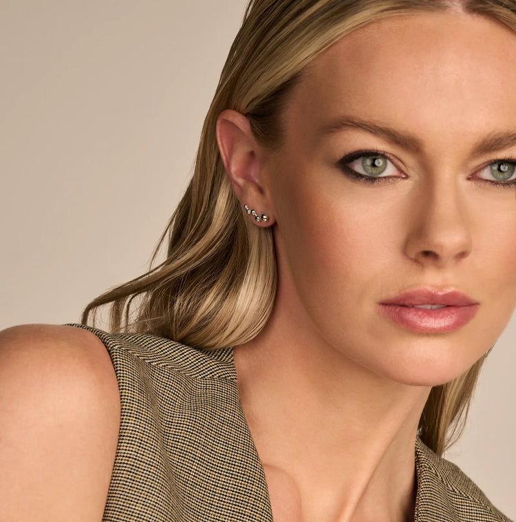 Esther Stud er en elegant ørestik, der med sine organiske former smukt følger ørets linjer. Fremstillet i 925 sterlingsølv, kombinerer det moderne design med et sofistikeret udtryk, der tilføjer et naturligt og tidløst touch til dit look.