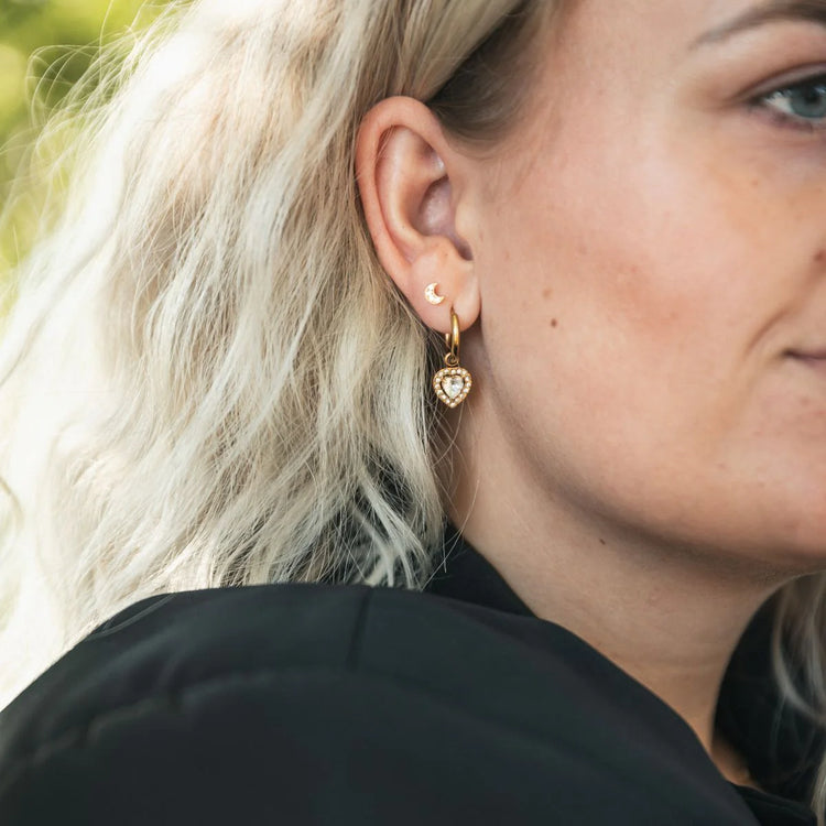 Elegante og tidløse Felicia Stone øreringe i forgyldt stål fra Naja Borres Hjertekollektion – et smukt symbol på kærlighed og stærke bånd.