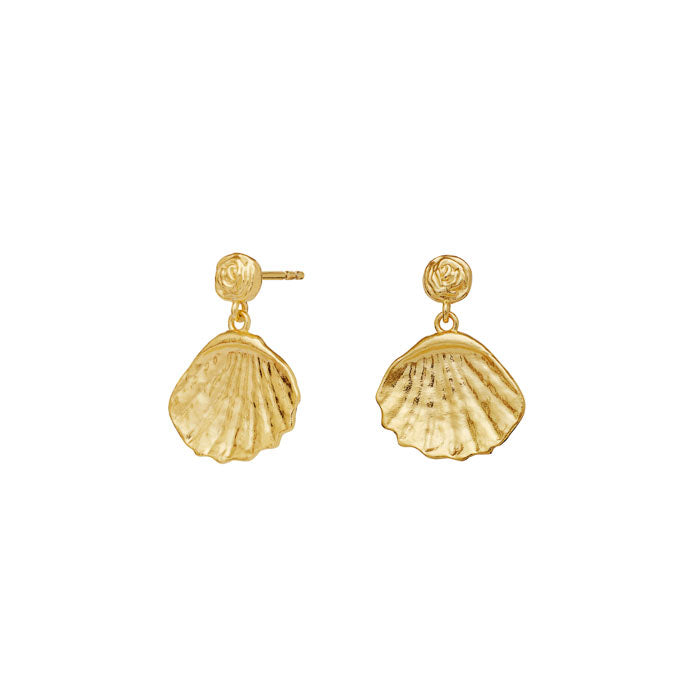 Mara øreringe i forgyldt sølv fra Maanesten med muslingeinspireret design og feminin energi. 📦 Fri fragt ved køb over 499 kr.
