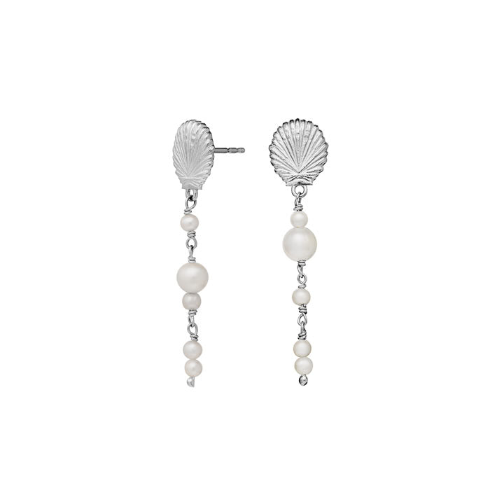 Fra vores Marilyn Øreringe falder ferskvandsperler elegant og lokkende, som dråber af havvand på en musling, idet den bryder spejlet mellem vand og overflade.