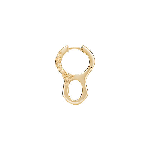 Rove er en huggie, der refererer til en dåsering. Den polerede overflade af sølvet opløses i en ru tekstur inspireret af opløsningen af metal på forsiden med en elegant poleret bagside. Denne huggie kan også bæres omvendt. Ideel til at have på alene eller i en stack.
