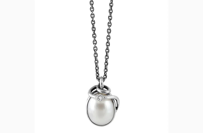 Smuk Collier i Sølv antik Oxideret med Perle - Rabinovich