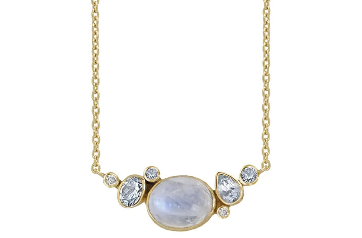 Forgyldt Collier med Rainbow Månesten, Sky Blue Topas og Zirkonia – Rabinovich Light Bloom