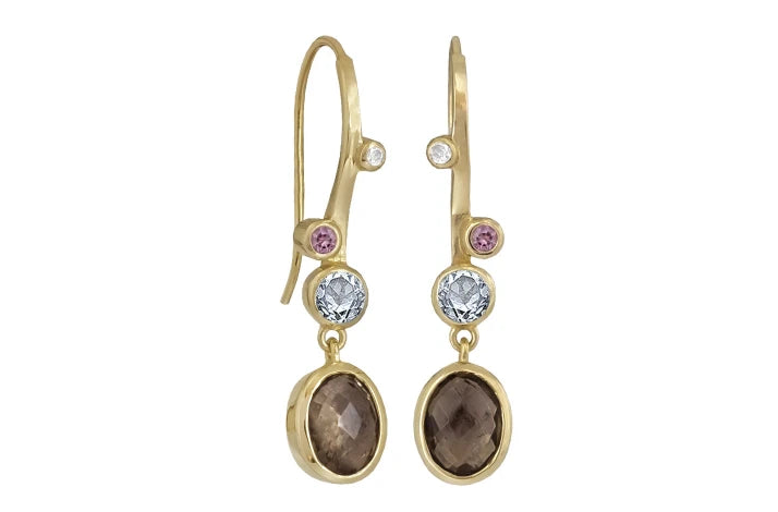 Forgyldt Ørehænger med Røgkvarts, Pink Turmalin og Topas – Rabinovich Earthlight