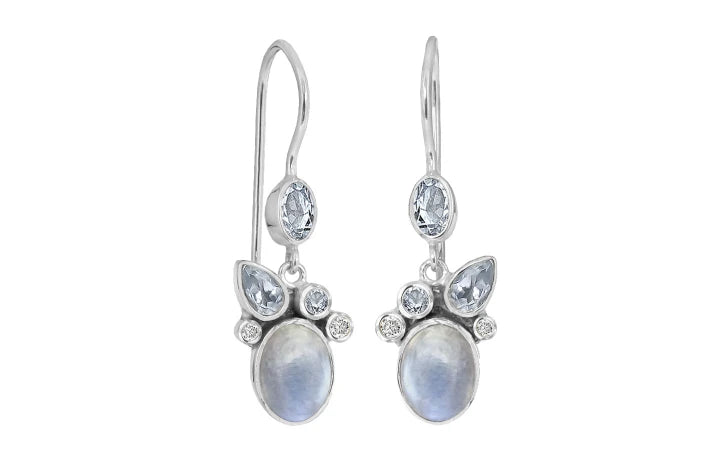 Sølv ørehænger antik ox, rainbow månesten, sky blå topas, zirkonia Rabinovich