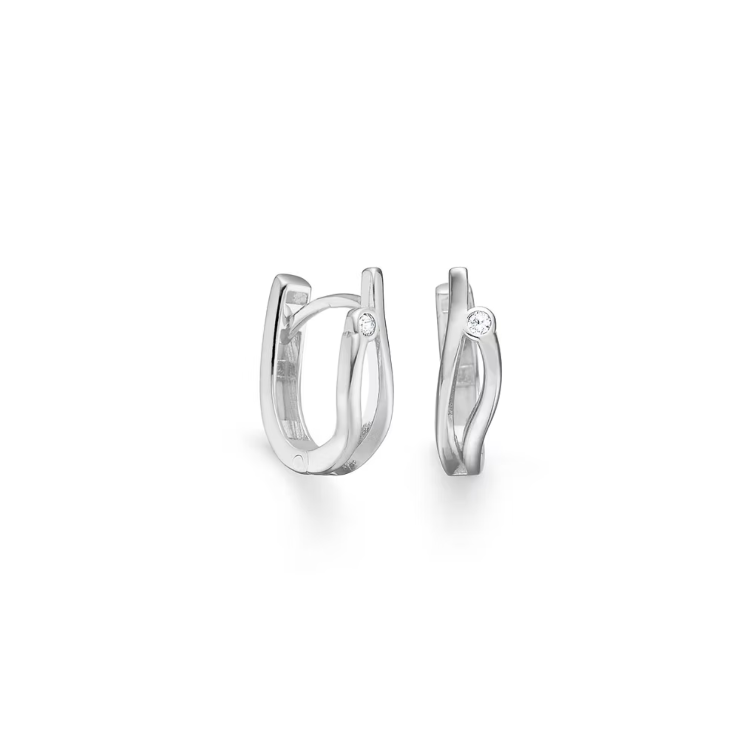 Øreringe i blankt sølv med zirkonia – Randers Sølv